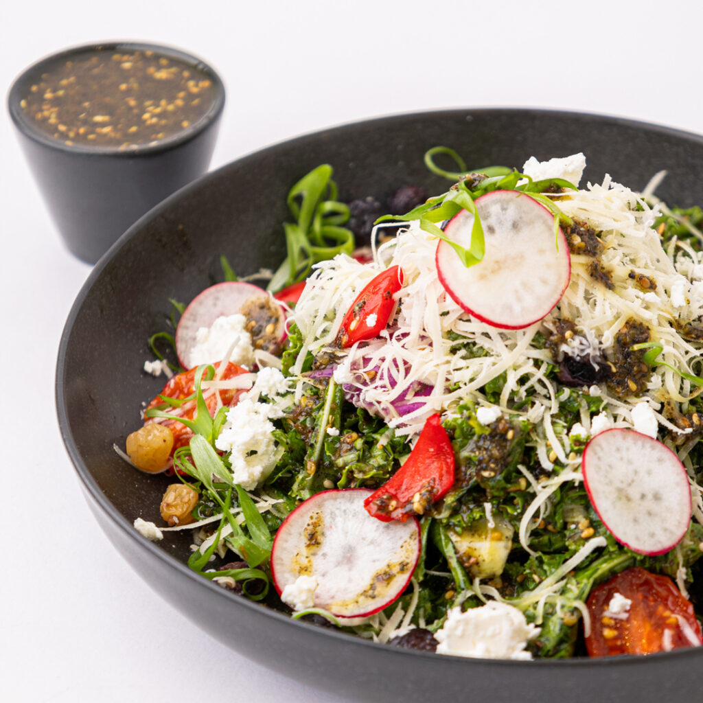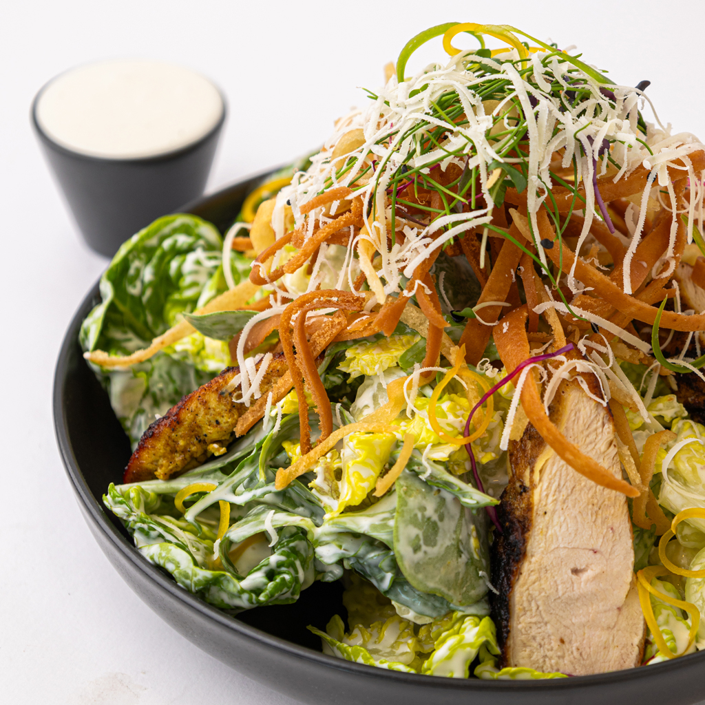 Refreshing salad with mixed lettuce, croutons (Arabic Bread), topped with grilled chicken and parmesan cheese. Presented with a light Caesar dressing.