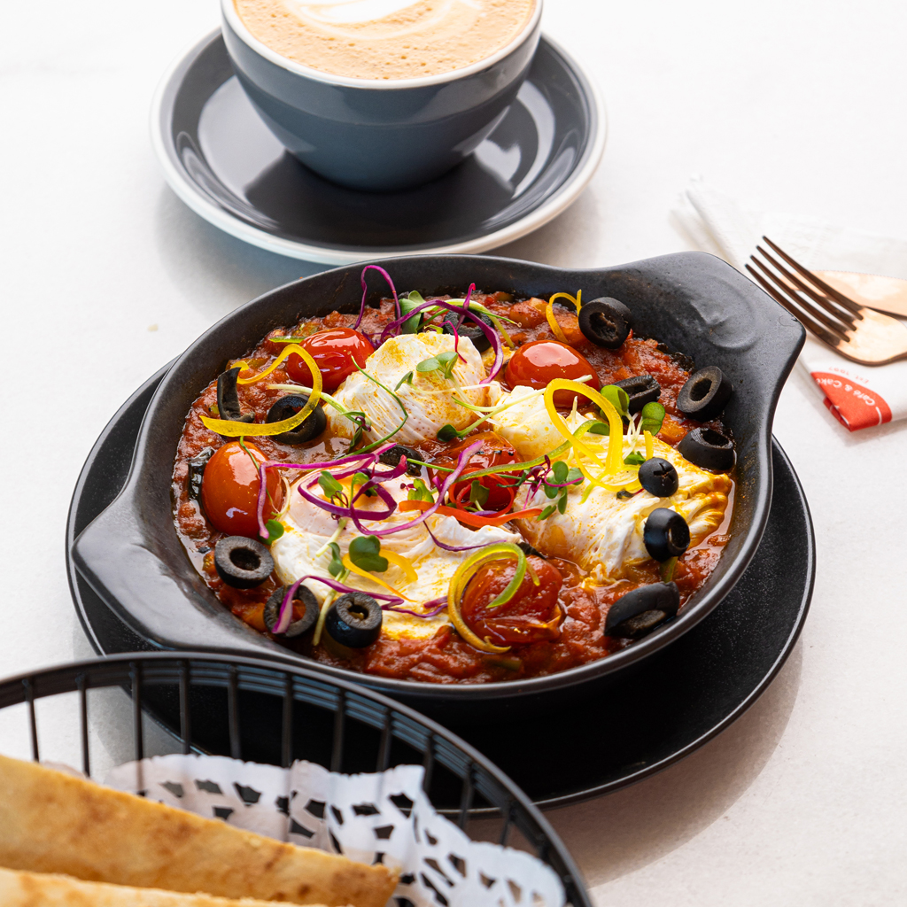 Three eggs poached in a meticulously spiced, aromatic and authentic moroccan sauce. Served with warm arabic bread and your choice of coffee or tea.