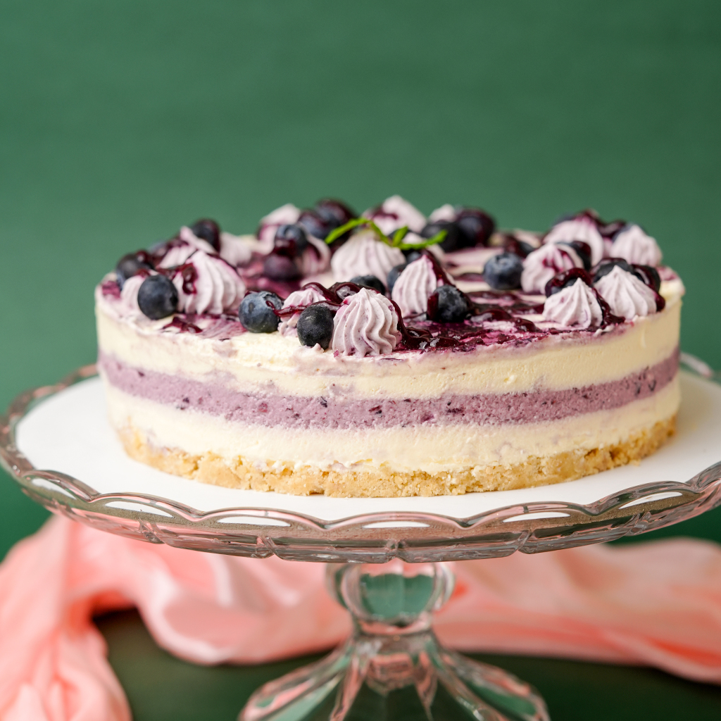 Cream Cheese, No Added Sugar Blueberry Cream, Fresh Blueberries, Monk Fruit Sweetener, Gluten-Free Oats, Almond Flour, Gelatine, Fresh Egg, Butter, Erythritol, Allulose