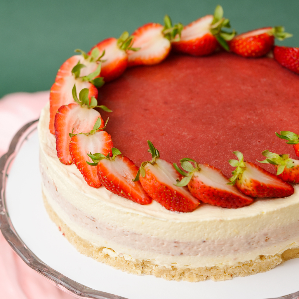 Cream Cheese, No Added Sugar Strawberry Cream, Fresh Strawberries, Monk Fruit Sweetener, Gluten-Free Oats, Almond Flour, Gelatine, Fresh Egg, Butter, Erythritol, Allulose
